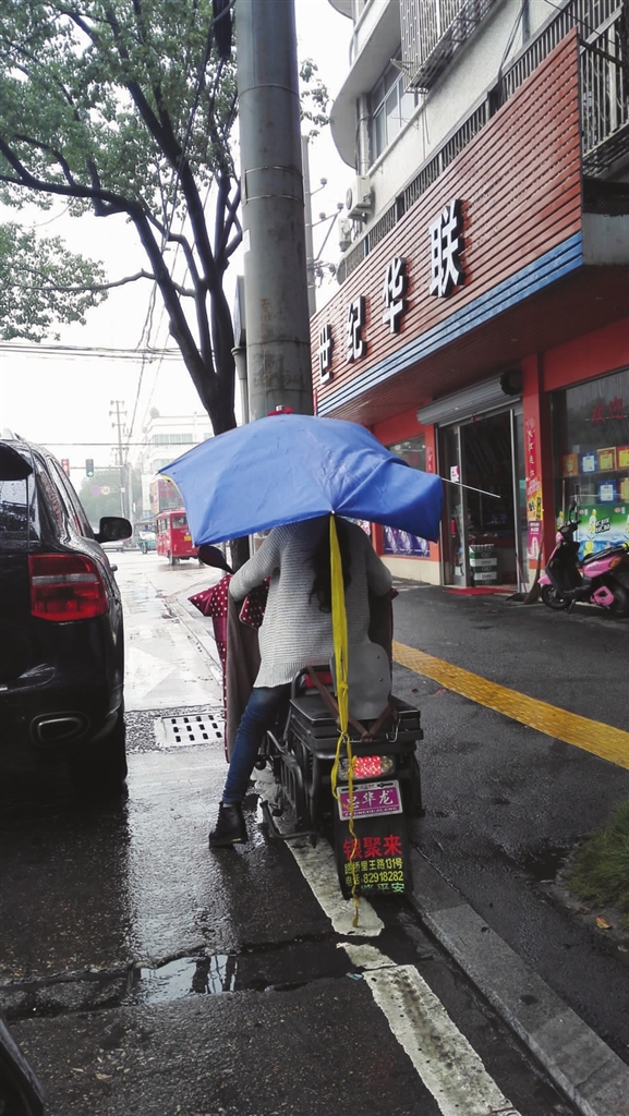 日前,在下里桥路与新安南街路口,一市民骑着撑着遮阳伞的电动自行车挤在车流中,身后拖着捆扎遮阳伞的绳子,如一条长长的尾巴。为进一步缓解我市交通拥堵现状,改善城区交通秩序,市公安局交通警察局直属三大队决定开展市区网路内道路交通陋习集中整治攻坚行动,活动截止12月底。 本报记者 陈政羽 摄