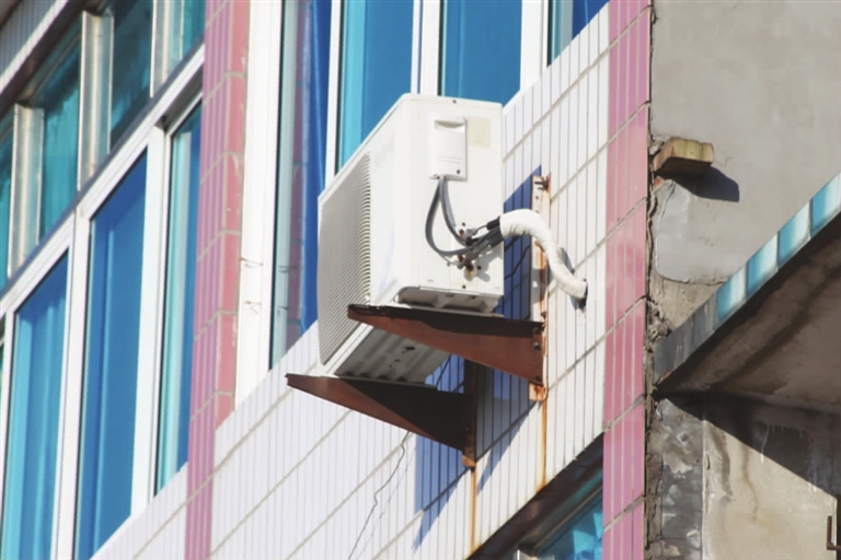 记者走访了多个小区后发现,近两年新建的小区都有安放空调的平台,但大多数老小区和农村住房,空调外机一般都安放在支架上。一些空调外机和支架在日晒雨淋之下,原本银灰色的支架早已经看不出原本的颜色,完全锈成了褐色,就连墙壁上也出现了两道很深的锈迹,一看就是“超期服役”了。