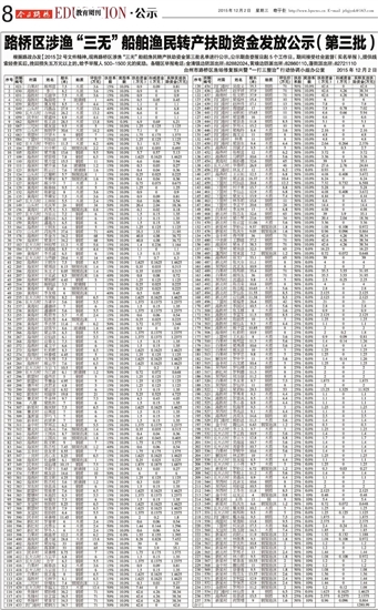 路桥区涉渔“三无”船舶渔民 转产扶助资金发放公示(第三批)