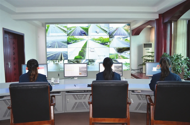 位于该局五楼的“智慧交通运行指挥中心”有着一双智慧的“眼睛”,中心东西两侧共安装了32块LED拼接大屏,清晰流畅的画面,使坐在操控台前的工作人员,能轻松地对行经主干道路的车辆及路况进行实时监控。规划中的服务器集群管理的机房,让数据交互变得更加快捷,24小时抓拍车辆的海量数据都记录存储于此。