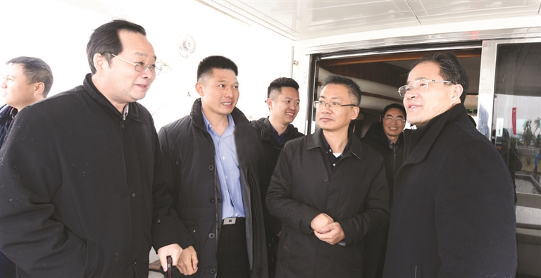 3月10日下午,市委书记王昌荣在陈伟义、吴海平、郑米良、陈才杰、郑敏强、叶帮锐、杨正敏等市、区领导的陪同下,率椒黄路三区、温岭、台州经济开发区管委会以及市级机关相关部门主要负责人,冒雨来我区调研消劣工作,并实地考察了金清“小三亚”游艇基地、金清新闸断面工程等。 本报记者 王保初 摄