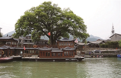 堰头村还有华东地区最为壮观、树龄最长的古樟树群,现存10棵,树龄在1000—1500年间,分布于渠首至一洞桥主干渠两岸。这些古樟树也是村落的风水树,其中两棵极为特别。一棵被民间敬为舍利树。此树曾多次遭雷击火烧,几经死亡,又奇迹生还,真可谓枯木逢春,分枝茂密,千年不倒。直径达一米的树干由此而中空,能容数人,令人不禁赞叹大自然的鬼斧神工。另一棵古樟则是从对岸延伸过来,纵多枝节分叉,刚好覆盖在岸边另一棵已死的老樟树上,形成一个迷惑的假象。黑色的老樟树上,绿叶生机勃发,老樟树似乎已重生。据导游介绍,这棵老樟树竟是个“冤死鬼”,因为它是因吸收营养过度而撑死的。