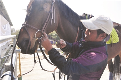 “从国外购置马匹的程序很多,要经过检验检疫,隔离一个月,经过空运入境,再在国内隔离一个月,所以,这匹马最快也得5月份才能抵达马场。”在马厩的一个角落里,数十捆干草整齐地叠放着,马场负责人告诉记者,这是马儿的主要食粮,从内蒙古运送过来,“一般我们将干草拌入红萝卜、豆粉、玉米、油、盐等用于饲养马。”