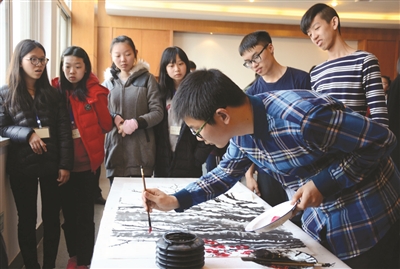 最后,路桥实验中学的学生还为来宾们展示了书画。经过一天的交流学习,香岛中学的学生们感受颇深,该校现读初三的张慧琳说:“路桥实验中学很多课程设置及活动特别吸引人,他们还有大规模的文化节,这些在我们香港都是比较缺乏的,不仅可以增加我们学生的见识,还可以让学生自己去组织活动,是一种非常不同的体验。有条件的话,希望我们两所学校可以一起做活动。”