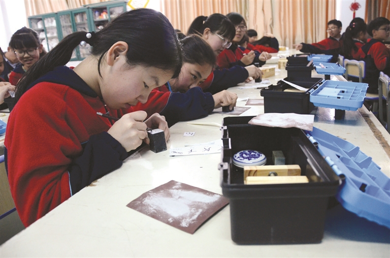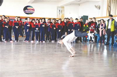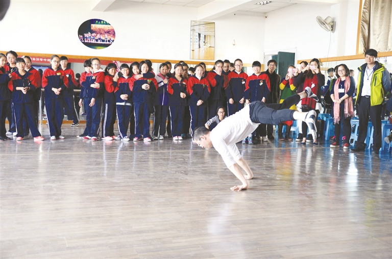 当天下午,路桥实验中学开设了舞蹈、漫画、篆刻、计算机、手工、篮球等特色拓展课程,香岛中学的学生们根据自己的兴趣爱好推门听课。在舞蹈教室,两所学校的学生们进行了切磋。香岛中学学生带来的街舞表演赢得了阵阵掌声,现场欢呼声连连,学生们沉浸在欢乐的海洋之中。另一边,参加漫画课的香岛中学学生跟着老师的教学,认真地画着,还被老师邀请到黑板上作画。