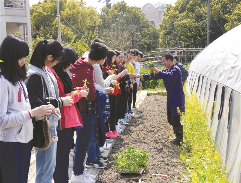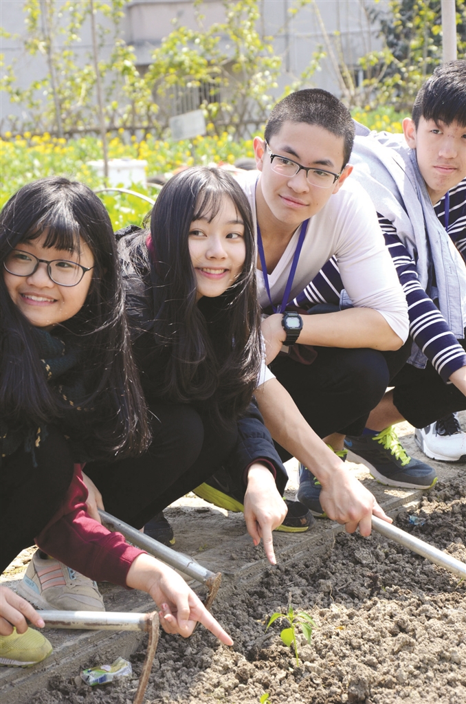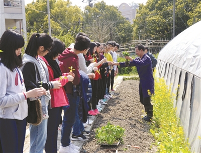 而最让香岛中学的学生们感兴趣的要数路桥实验中学的青青农场了。他们在这里不仅摘下草莓,品尝了草莓的美味,每人还尝试亲手种下辣椒苗。“土要挖多深?”“两株苗之间的距离要多大?”“水要浇多少?”在农场内的一方空田里,学生们手里拿着学校农场技师分发的辣椒苗,兴趣十足地发问。黄颂良说:“好多同学都没见过农田,更别说亲手栽种了,这对他们来说是一个非常好的体验。”