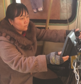 龙世英是位升降机司机,有着十多年的工作经验。跟随龙世英来到工作现场,只见她打开升降机的外笼门锁,进入轿厢,依次关好外笼门和轿厢门。随后,她启动了升降机的电源,将脸凑到一个5.5厘米宽、7厘米长的液晶小屏幕上,识别系统对龙世英的脸部进行了扫描辨认,在确认龙世英就是这台升降机的操作人员后,升降机自动启动。在龙世英娴熟地操作完各种指令后,她将升降机降落回地面。系统自动对升降机进行了关闭,若想重新操作,则需要重新启动,再次进行人脸识别确认。