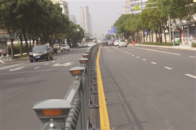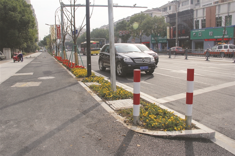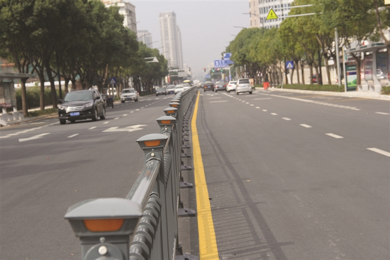 经常来往于腾达路的市民可能有印象,曾经腾达路上的一些交通标志牌年久失修,风吹日晒,标志牌被行道树遮挡严重。“我们针对路灯被行道树遮挡的实际情况,花了一番心思,最后决定将路灯的挑杆加长至3.5米到4米左右,这样我们的道路照明更加清晰。其实,这只是我们在设计这条路上的一个小插曲而已,更多的像人非共板、机非分离模式,都是我们智慧交通的体现。”说到现智慧交通的人非共板、机非分离模式,这条道路的总设计师、市政处主任金礼定滔滔不绝,“这套系统针对以往我区非机动车道宽度较窄、坡度较大、行驶条件较差、驾驶员不按车道行驶的问题,总结出来后进行了全新的设计。”改造后的路面,非机动车道宽度达3米,与机动车道的坡度保持平缓,使慢行系统一体化,交通组织更加有序。“我每天都在这条路上跑。以前,这条路一到上下班高峰期就各种拥堵,人、车从各处汇集到一条路上,行驶效率极低。改造后的路面就不一样了,通过道路两侧及中间隔离栏杆的阻挡,对机动车和行走的市民进行隔离,提高了行车幸福感。驾驶员不用时时提心吊胆随时从绿化带冲出的行人,这也让道路交通安全得到了更大的保证。”张先生家就住在水天一色,他每天上下班都要从这条路上经过,新改造好的腾达路,让张先生的行车时间都能自由掌控了。他对这条路赞不绝口。