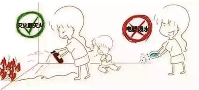 ③家用电器或线路着火,要先切断电源,再用干粉或气体灭火器灭火,不可直接泼水灭火,以防触电或电器爆炸伤人。