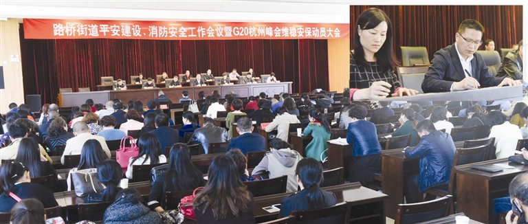 日前,路桥街道召开平安建设、消房安全工作会议暨G20杭州峰会维稳安保动员大会。良一村、永跃村、商城社区等负责人在会上签订了《平安综治暨G20杭州峰会维稳安保目标管理责任书》。