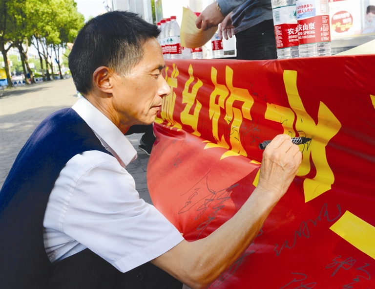 5月3日,由卫生监督所发起的“关注城乡饮水卫生 共筑健康和谐路桥”宣传活动在市新华书店门口展开。活动吸引了过往市民参加,纷纷在宣传标语上签名。