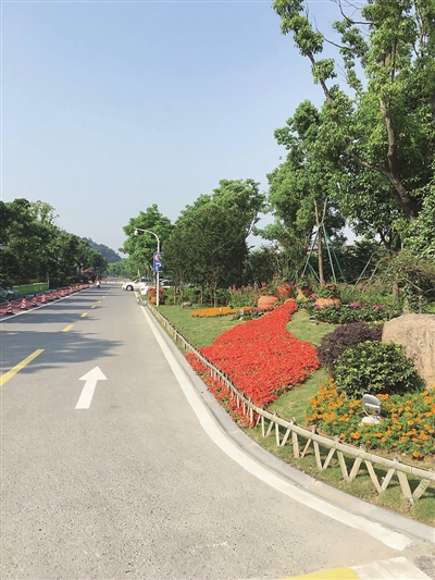 “中央山公园二期又添美景了。”近日,区园林管理处的工作人员告诉记者,为了让中央山公园二期E入口更醒目,便于市民出入,区园林管理处于4月中旬对马路延伸至公园入口的两侧进行了绿化改造,改造后,入口前小道两旁的景色特别赏心悦目。