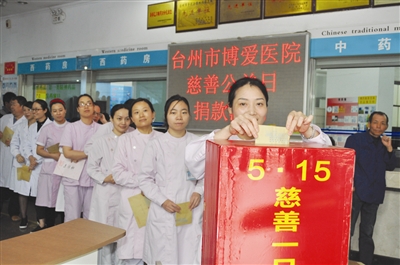 5月18日,博爱医院组织全院干部职工举行“慈善公益日”募捐活动,共募集善款36100元,随后将其中18050元善款转入区红十字会,将18050元转入新台州人健康救助基金会。