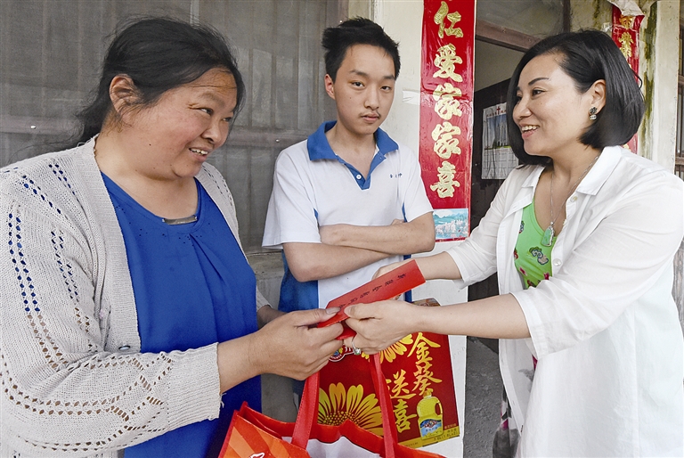 日前,金清镇卷桥村的俞玉娇欣喜地接过慰问金及慰问物品。当日,我区新的社会阶层人士联谊会的会员们,自筹经费,购买了食用油、日常用品等,来到金清、蓬街等地,走访慰问生活困难的残疾家庭。 本报记者 王保初 摄