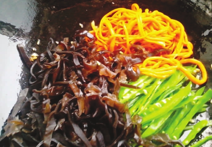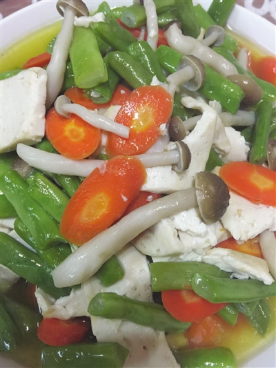 外婆常把各种口感相近的食材进行合理搭配,比如将胡萝卜、豆、鲜香菇、豆腐干混合后进行清炒。有时也会将“同种”蔬菜进行混搭,比如胡萝卜、莴笋、西葫芦、土豆等。烹炒时可各取一个,洗后切丁,加黄豆芽,配上葱、姜等,用色拉油及调味品炒成。这样的混合菜色彩鲜艳,富含多种营养素及防癌活性物质,鲜嫩清淡,味美可口。