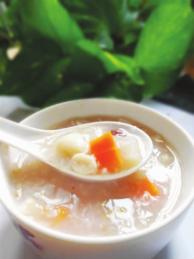 对于早餐,外婆也乐于“混搭”之道,除了大伙平常喝的红枣、桂园、莲子等粥外,她更愿意将平日里儿女们送来吃不完的水果切成块放进粥里,苹果梨子粥、番茄粥、香蕉粥、木瓜粥等更是她餐桌上的“常客”。她说,这样对于老年人而言,不仅能更好地吸收水果的维生素和补充体内所需水分,熬煮的过程也更好地避免了生冷水果对肠胃的刺激,一举两得。不过,对于有些口味特别的水果粥,我还是持一定的保留态度。