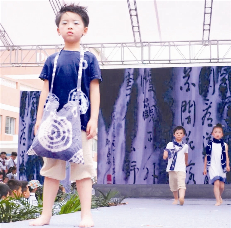 昨天,路北中心小学的一群小模特们为全校师生带来了一场扎染服装秀。模特身上的T恤、裙子、背包、围巾等物件上的图案,均是在校学生在扎染课堂中的制作成果。据了解,扎染课程是该校的特色课程,现已成为该校的校本课程。 本报通讯员 刘婷婷 记者 於徐阳 摄