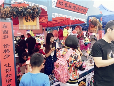 该校操场上,几十张课桌椅设成了50多个义卖摊位,桌面上摆放着琳琅满目的物品,有食品、学习用品、手工作品、植物等。而各班自创的“招牌海报”则成了义卖活动中一道亮丽的风景线。“鸡毛蒜皮杂货铺”“小黄人零食铺”“奔跑吧!同学”……一个个富有朝气、创意的名字展现着学生们的热情。小义卖员们热情吆喝、叫卖着,过往的学生们兴高采烈、三五成群地拥到各个摊位前,精心挑选着心仪的物品,同时也献出了一份暖暖的爱心。此外,不少家长和老师也都按捺不住,积极参与到献爱心的行列中。