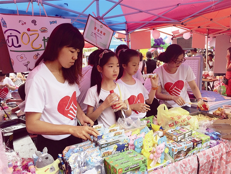 “为学生们提供模拟商场实践平台,旨在给他们一次真切的商业职场体验,提高他们的组织能力、宣传能力和合作交往能力,对他们进行一次消费、理财和爱心教育。”路桥实验小学校长陈方斌告诉记者,爱心商城义卖活动由该校少先队组织发起,共有42个班级参加,设立50余个摊位。全校人人参与,由学生和家长自主准备“义卖品”,义卖所得的款项将为该校的贫困儿童购买书籍或生活用品,从而提升学生乐于奉献、关爱他人的意识。 (许 炜 文/摄)