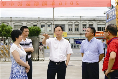 6月13日上午,区委副书记、区长潘建华,副区长蒋斌芳一行到路桥第二中学巡视中考考场。据悉,今年我区共设10个中考考场,全区共有5400多名学生参加中考。其中,路桥第二中学就有365名考生。