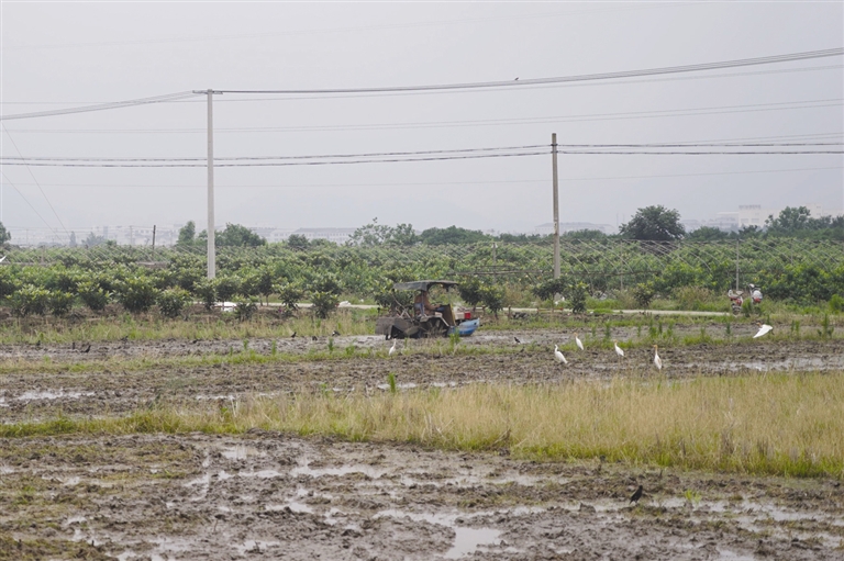 日前,笔者在桐屿街道民主村的田地里看到,成群的白鹭紧跟着正在翻地的拖拉机,或低头啄食,或飞舞嬉戏,构成了一幅人鸟和谐相处的生态画卷。