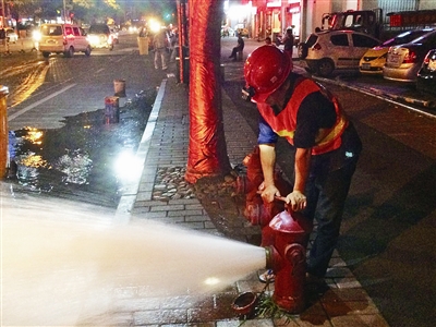 为改善管网水质,提高供水质量,6月21日晚,自来水公司组织人员对公司供水区域管网进行冲洗排放。为了做好该项工作,公司制定了详细的实施方案,并且尽量避开居民用水高峰时段,把管道冲洗排放时间安排在深夜进行。