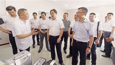 6月24日上午,市委书记王昌荣一行在副市长李跃程、区委书记郑敏强、副区长梁妙富等陪同下,来我区企业开展调研,并实地考察了位于集聚区路桥分区管委会的巨科集团。 本报记者 王保初 摄