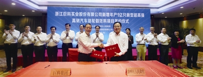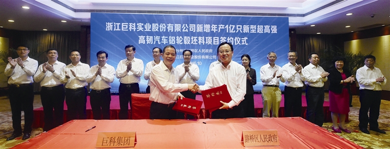 张兵表示,巨科集团是我市的重点工业企业,在汽车轻量化铝合金轮毂生产工艺、生产规模等方面具有世界领先水平。这次,巨科集团趁势而上,再启重大战略布局,实施二期年产1亿只新型高强高韧铝合金轮毂坯料项目,总投资达64亿元,将进一步深度整合上下游产业链、优化产业布局、提高产业集聚度,提高全市汽配产业整体水平,助推我市汽车产业转型升级。