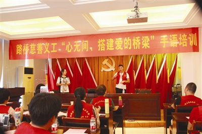 10月15日—16日,在区委党校会议室里,由慈善总会义工分会组织的一场以“心无间,搭建爱的桥梁”为主题的手语培训会在这里进行,吸引了100余名义工参加。