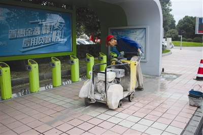 日前,市政处组织工作人员检查路桥大道路面情况。路桥大道是主城区重要的交通道路,因日常车流量较大,造成路面破损、翘起,坑洼不平,严重影响市民出行。10月15日起,市政处开始对路桥大道进行修补改造。图为工人正在对电力大厦前自行车租赁点的路面进行切割。