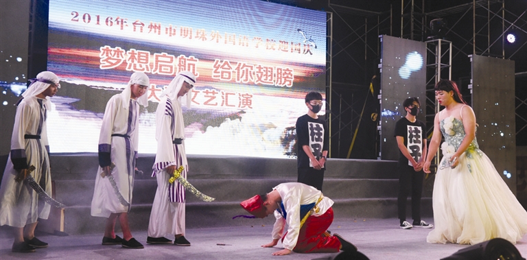 日前,台州市明珠外国语学校举行“梦想启航 给你翅膀”大型文化汇演。该校学生和老师纷纷上台,分别展示和表演了歌伴舞、小品、歌曲、武术、古筝伴舞、对唱、时装秀等20个精彩节目,博得现场观众阵阵掌声。