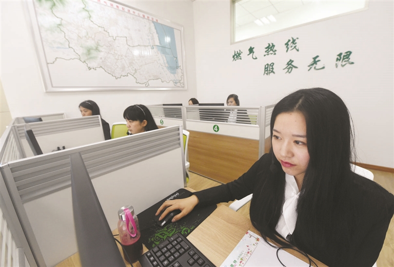 11月8日上午,燃气销售配送中心的话务员在热情接听客户热线。当日,台州市首家燃气专业配送服务中心正式运行并上门为市民配送瓶装燃气。据悉,需要更换、配送燃气的市民只要拨打4008262345热线,配送公司通过GPS实时定位并结合配送车辆的定位、抢单,立马将同城同价(75元/15公斤瓶)的燃气,以最快的速度送上门。该服务中心的运行,真正为市民提供了安全、方便、快捷、实惠的服务。