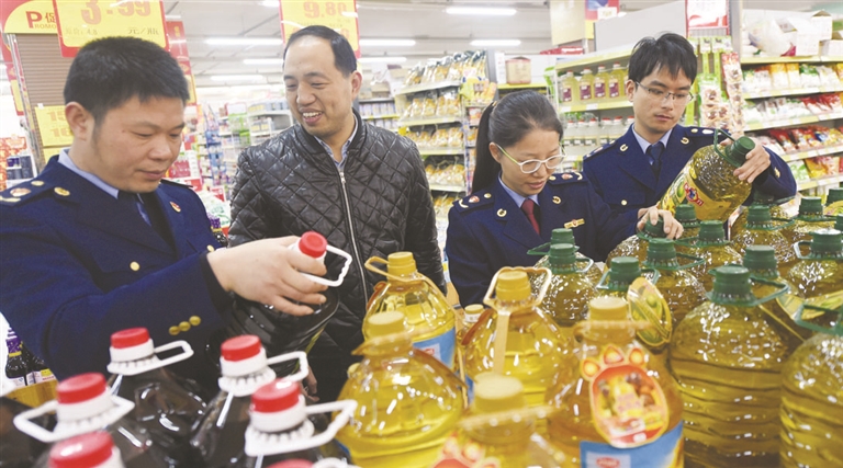 3月14日上午,市场监督管理局蓬街所执法人员在乡村一超市检查流通商品质量。当日,该工商所联合计生、司法、卫生、烟草、农业等10多家单位工作人员,在人流密集地开展以“网络诚信 消费无忧” 为主题的纪念“3·15消费者权益日”大型宣传咨询服务活动,为过往行人提供物品真假识别、法律咨询、消费维权、农业知识等服务。