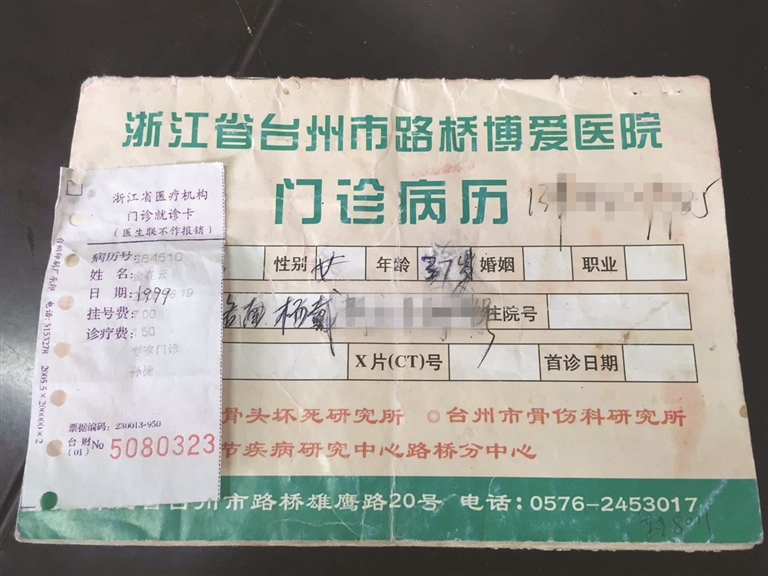 台州市博爱医院成立20周年之际,一本泛黄的老病历本进入该院办公室工作人员的视野。在一楼导诊台工作,今年53岁的金花云大姐有点不好意思地说,这病历本留了将近20年了,没舍得扔。在她心里,她和博爱医院之间的故事,正是由这本病历本开启。