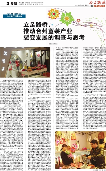 立足路桥,推动台州童装产业 裂变发展的调查与思考