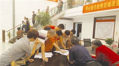 话月组也是最早挂图作战的政策处置组之一,在他们的签约图上画满了绿色方块,是根据已签对象户的住址进行绘制的,每天都实时更新。此外,话月组还特别重视以问题为导向的疏通和以目标为导向的突破。比如对一些特殊拆迁户,包括子女众多、有实际困难,或者有特殊利益诉求的拆迁户,他们会进行多次研讨和服务跟进,对不同的补偿方案进行逐一分析,分清其中利弊,尽量在政策制度的框架下为拆迁户争取最大利益,以满足他们的需求。从落后到赶超,话月组的“贴民心、办实事”为他们留足了后劲,也彰显了他们的定力。