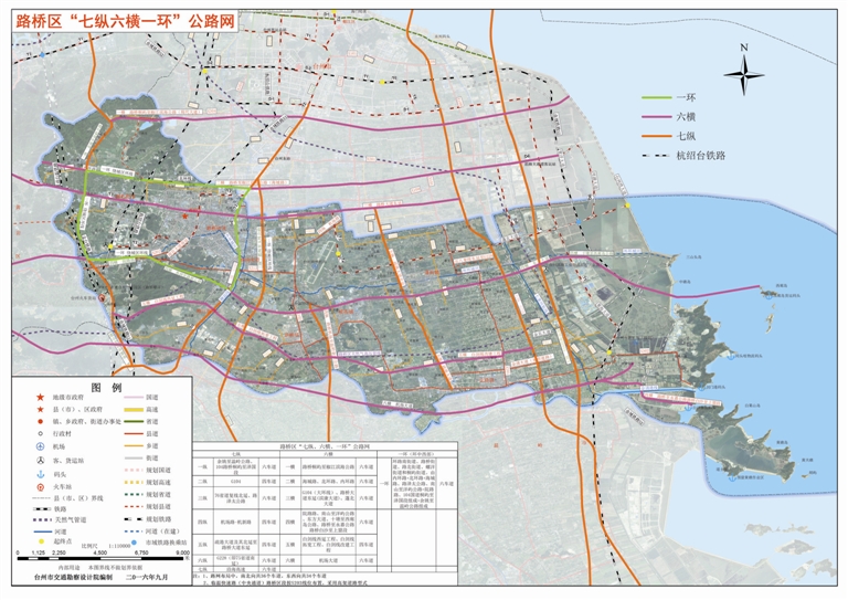 据了解,“七纵”指的是7条南北走向、贯穿路桥境内的主干道,由西往东排列分别是余姚至温岭公路(路桥段)、现75省道部分路段和现G104、鄞州至玉环公路(路桥段)、椒新公路(路桥段)、疏港大道及北延、G228国道(路桥段)、台州湾大桥及接线工程(路桥段);“六横”指的是6条东西走向贯穿路桥境内的主干道,由北向南排列分别是路桥桐屿至椒江滨海公路(路桥段)、路桥至椒江沿海公路(路桥段)、104国道及规划路桥大道东延、路桥至永嘉公路(路桥段)、白剑线、机场大道(路桥段);“一环”为绕路桥城区环线,绕城区环线由一纵、二横、三纵和四横构成。