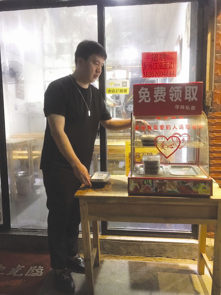 “文明”之中包含着真诚待人,我愿这份真诚尽自己的所能。从今年3月份起的每晚21时后,我会将当天未售完的饭菜全部打包好放进店门口的透明保温箱内,无偿提供给有需要的人,地址就在河西新村20幢4号“寻味私厨”。虽然每天提供饭菜的数量不多,但我会一直持续下去。现在,每月我还会邀请周边的环卫工人过来免费就餐,因为“美丽路桥”离不开这群可爱的“马路天使”。