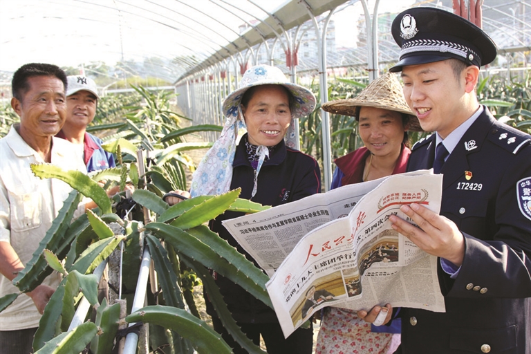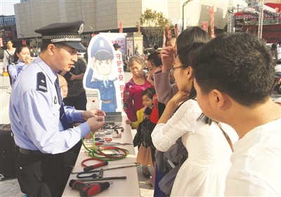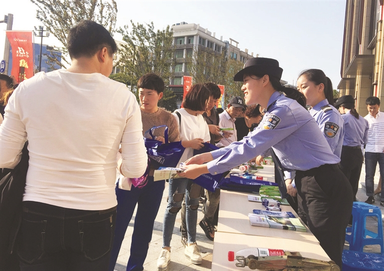 10月28日下午,在繁华的中盛城市广场门口,公安分局组织所有警种人员在那里开展摆摊宣传,向大家宣传户籍、出入境等与群众工作生活息息相关的政策,向群众普及居家防范常识。这几天,在社区、在农村,民警或是专门组织广大群众开展集中恳谈,或是结合村居的重阳节活动走到老人中间,或是结合下村走访、上门送证等机会倾听群众心声。