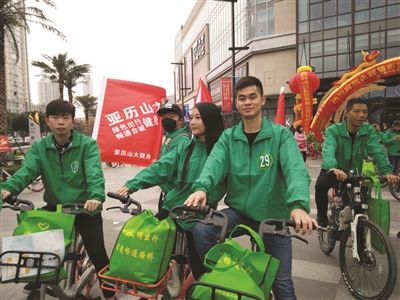 活动现场,“绿行侠”们身着统一绿色制服,以4人一小组为单位,结伴完成指定骑行任务。
