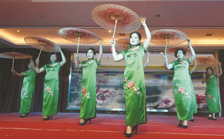 日前,区巾帼创业者协会在三友国际饭店,举行2017年年会文艺汇演。巾帼创业者们纷纷上台,自编自演了情景剧、小品、旗袍秀等精彩节目,全面展示女性创业者的快乐和风采。 全媒体记者 王保初 摄