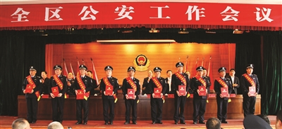 2017年,公安机关在区委、区政府和市公安局的坚强领导下,在区人大、政协和社会各界的关心支持下,以“人民利益高于一切,平安稳定压倒一切,工作实绩说明一切”为引领,以“勇争第一,勇立潮头”为导向,以“强势治安、精细治业、情理治警”为途径,坚持降发案战略不动摇,实施情报全面主导警务机制改革与大部门大警种制改革双轮驱动,大力推进基础信息化、执法规范化和队伍正规化建设,深入打造“幸福警队、活力警营、优质警务”,公安工作和队伍建设稳步发展。