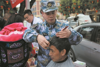 3月5日下午,海军91504部队医院组织医护人员来到横街镇,为居民开展便民服务,受到居民的纷纷点赞。 本报通讯员 王国洋 摄