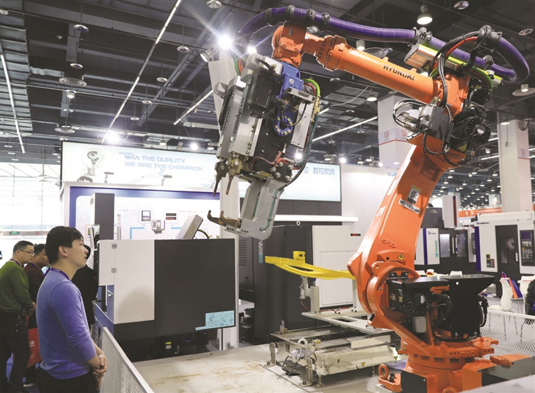 展会上,其他本土企业也不甘示弱,自主研发的机械手、加工中心等也突出展现了我市高端“智”造水平。