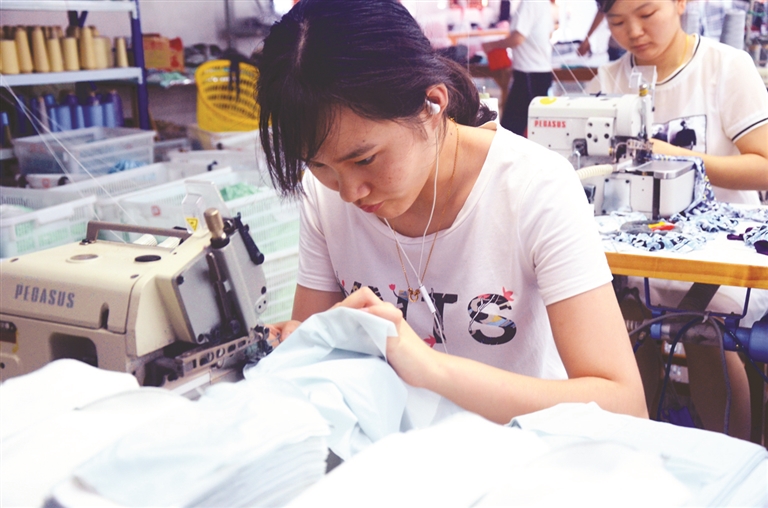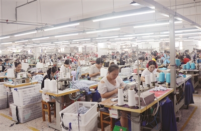 回到路桥后,章明剑立即着手购买制作内裤的机器,一开始并不是那么顺利。机器买来了,但却没人会做,哪怕送工人去广东那边学习技术,可依然没有学会。后来,章明剑“挖”了技工过来,终于解决了这个问题。于是,内裤开始顺利投产。现在,在企业的厂房内,一层用来打样、裁剪,一层用来生产,一层用来包装。整个生产车间一两百人齐刷刷地坐成一排排,专注地踩着“洋车”,一条条内裤、一件件内衣就此“诞生”,企业年产量已挤进全国行业内前十。
