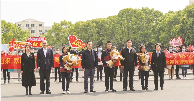 “你们是路桥的好儿女、真英雄!你们辛苦了!”潘建华深情地说,吴国清、许城娟、姚敏3位医务人员,在全国疫情防控最为急迫的时刻,不畏艰险、不惧生死,主动请缨驰援湖北,与时间赛跑、与病魔决战,出色完成了医疗救治任务,为坚决打赢疫情防控人民战争、总体战、阻击战立下了汗马功劳。希望大家铭记这次难忘的战疫经历,在今后的工作中,继续保持优良的政治品格、务实的工作作风和无私的奉献精神,始终奋勇向前,以仁心仁术为加快全区公共卫生体系建设、守护人民的生命健康再立新功、再创佳绩!