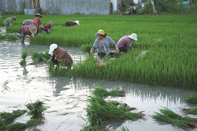 连日来,在新桥镇的晚稻田里,承包有400多亩粮田的种粮户黄师傅,每天带领30多名农民冒着高温在田间紧张劳作。据悉,我区出台了粮食生产政策,今年补贴标准比去年提高约30%,重点提高了双季稻的补贴,加大了对规模种粮大户的扶持力度。