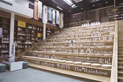 推开沉重的木门,缓步走进水心书院的大厅,最引人注目的便是一节极具特色的多功能阶梯,它和书柜结合在一起,形成联系上下两层的主要互动空间。沿着阶梯逐级向上,二楼则结合了空间的功能性与书院的整体性,设有休闲茶座、书画室、少儿“读书角”等休憩活动区。
