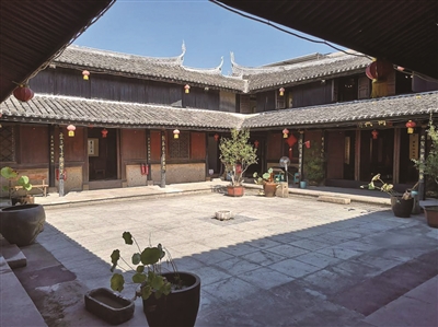 书院坐北朝南建造,是木结构包围式的四合式二层院落。庭院天井以方井设计的,蕴含着中国古代“天圆地方”的宇宙观念,融汇着东方哲学与智慧的创意。灰雕层次鲜明,清新淡雅、犹如水墨画;柱础则是古建筑的一种文化符号和景观,彰显东方文化之美;飞檐上雕刻的图案似麒麟、像飞鹤,寓意辟邪祈福……与和合文化相融合的古宅院,古色、古貌活灵活现,处处有历史,步步有文化,件件有故事。